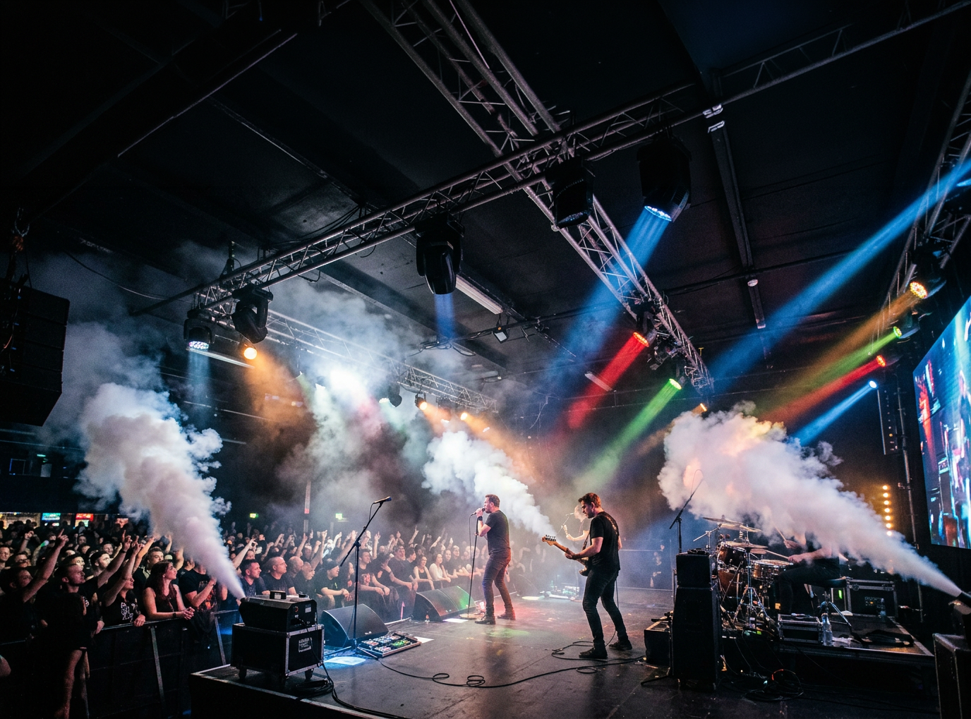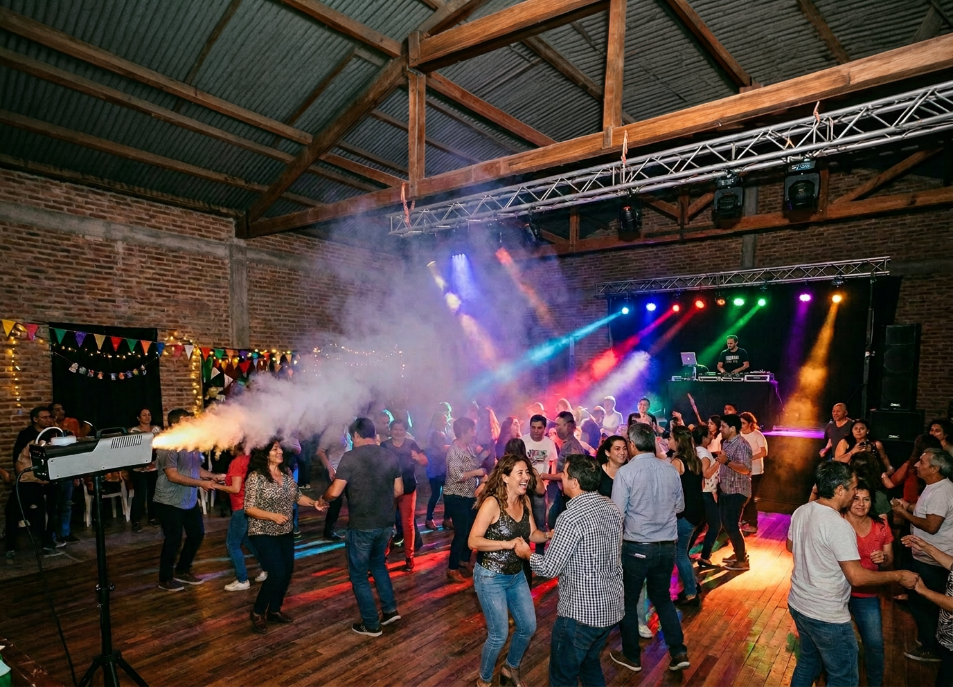 Máquinas de humo que realzan los efectos de iluminación y crean una atmósfera escénica envolvente. Ideales para potenciar la visibilidad de luces y dar profundidad al escenario.